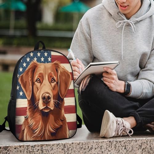 HOT ! Nova Scotia Duck Tolling Retriever Dog American Flag Backpack Simple Leisure Travel Backpack Outgoing Daypack 17 Inch