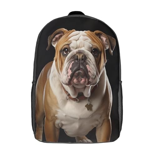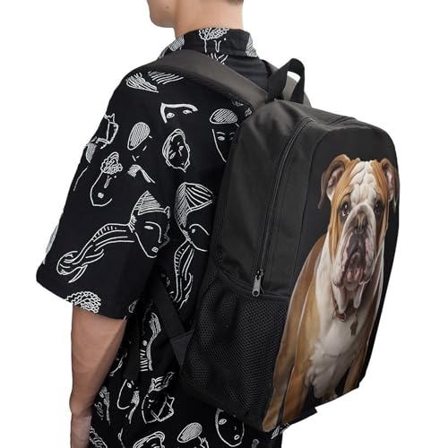 Unique Artistic 17" Durable Polyester Backpack English-Bulldog Printed - Large Anti-Wrinkle Carryall with Adjustable Straps & Side Pockets 1