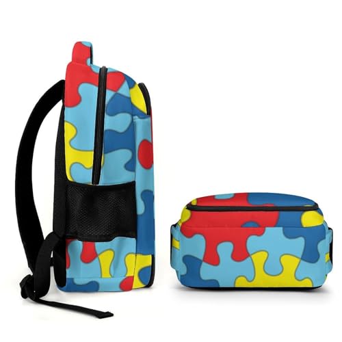 Men's Commuter Bag Large Travel Bag Portable Work Backpack With Double Zippers Autism Puzzle 4