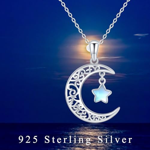 TRISHULA Moon Star Necklace, 925 Sterling Silver Crescent Moon Sun Pendant with Moonstone Crescent Jewelry Gift for Her Sister Birthday Christmas 7