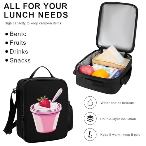 Strawberry Yogurt Backpack 3 Set with Lunch Bag Insulated Shoulder Meal Tote Bags Pencil Case Box Casual Daypack 5