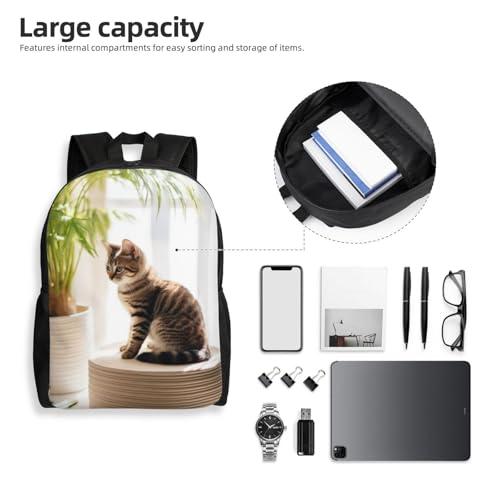 High Capacity Adorable Cat Relaxing Indoors Backpack Large Multipurpose Bag Double Zipper Backpack Unisex 16 Inch 7
