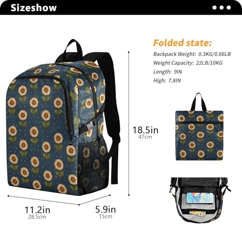 More information about AIXIWAWA Lightweight Hiking Backpacks Sunflower Pattern Print, Foldable Waterproof Daypack for Commute Travel