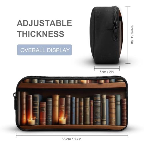 Backpack Bookbag Set Vintage Library Bookshelf Candlelight Backpack with Lunch Bags and Makeup Bag Shoulder Bag with Lunch Box Storage Bags 5