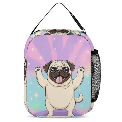 Backpack Bookbag Set Tie Dye Cute Pug Backpack with Lunch Bags and Makeup Bag Shoulder Bag with Lunch Box Storage Bags 5