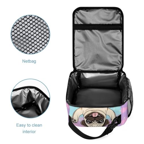 Backpack Bookbag Set Tie Dye Cute Pug Backpack with Lunch Bags and Makeup Bag Shoulder Bag with Lunch Box Storage Bags 4