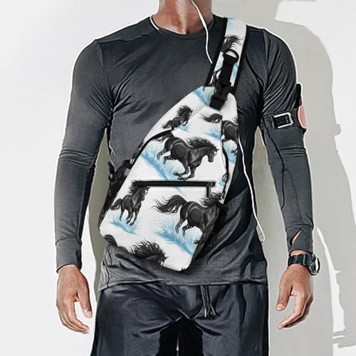Fashion Chest Bag, Shoulder Bag, Dress Decor Sling Backpack, Casual Day Pack For Travel Shopping Black Horse 1