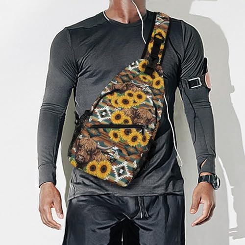 HOT ! Lightweight Chest Shoulder Backpack, Chest Bag, Fashion Day Pack For Women And Men Native Aztec Sunflower Cattle Highland Cow