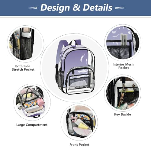 Violet Periwinkle Gradient Ombre Clear Backpack Women Cute Kids Backpack Boys Girls See through Approved Bag 7