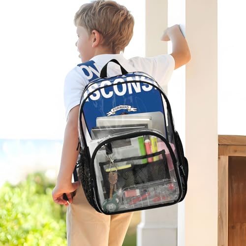 Travel Clear Backpack Floral Boys Backpacks for Girls Approved Shoulder Bag Wisconsin State Flag 7