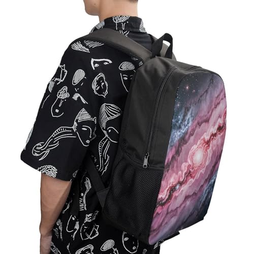 More information about Heavy-Duty 17 Inch Backpack with Side Pockets, Marble Patterned Milky Way Print Durable Backpack Ideal for Travel, And Outdoor Adventures