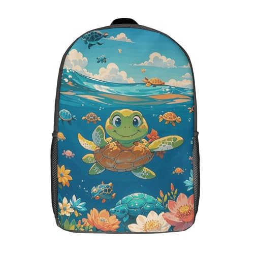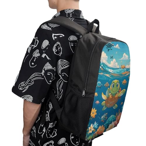 HOT ! 17 Inch Backpack for Travel, Turtle Academy Print Modern Backpack Shoulder Bag with Adjustable Straps, Side Pockets & Reinforced Bottom