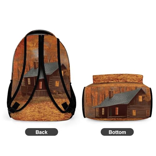 HOT ! Autumn Woods Cabin Backpack for Men Women, Durable Small Backpack Casual Lightweight Daypack for Travel Bag