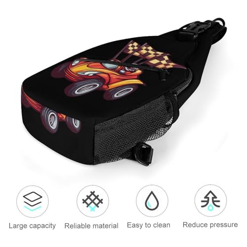 Racing Car with Checkered Flags Crossbody Sling Backpack Casual Chest Bag Fanny Pack for Women Men Travel Hiking 5