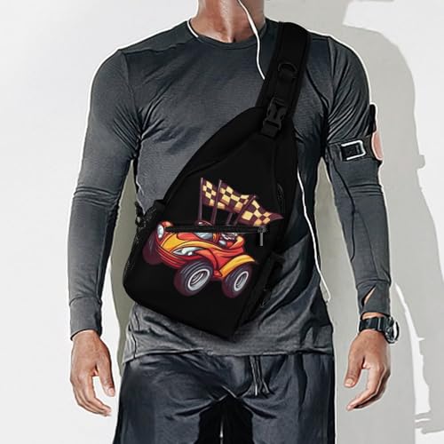 Racing Car with Checkered Flags Crossbody Sling Backpack Casual Chest Bag Fanny Pack for Women Men Travel Hiking 6