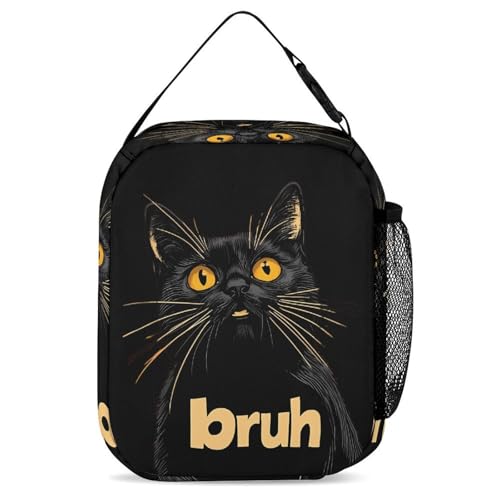 HOT ! Meme Saying Cat Bruh 3 PCS Backpack Set Casual Daypack with Insulated Lunch Bag & Pencil Case