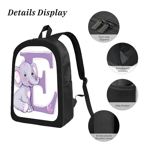Cute Animal Elephant Letters 3 Pcs 17 Inches Backpack Set With Insulated Lunch Bag And Pencil Pouch Large Back Pack For Men Women Lunchbox Pencil Case Waterproof Backpacks Lunch Box 3 Piece Daypacks 3