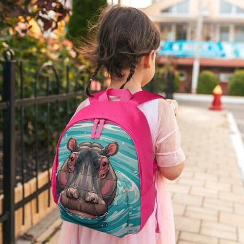 Cute Hippopotamus Backpack for Men Women, Durable Small Bookbag Lightweight Daypack for Travel, Hiking, Pink-style 5