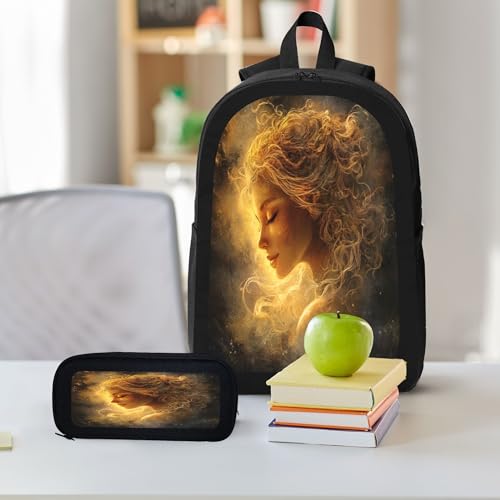 3PCS Backpack for Women Men With Lunch Box Pencil Bag 17 Inch Lightweight Adjustable Strap Back Pack 3 In 1 Set Painting Woman Elegant Daypack Unisex Fit Travel Work Camping 3
