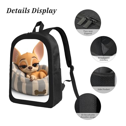Cute Animal Cartoon Dog Large 3-Piece Backpack Set with Insulated Lunch Box & Pencil Case Waterproof 17 Inches Backpacks Bag Back Packs Pencil Pouch Lunch Bag for Men Women 3 Pcs (Black) 7