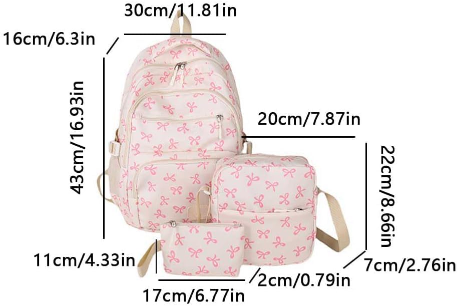• 【Comfortable Carrying】This 3pcs Set Bow Backpack For Girls has Thickened breathable shoulder straps + back cushioning pads disperse pressure and do not squeeze shoulders when carried for a long time.