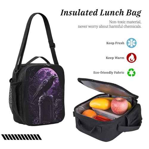 Gothic Raven Backpacks 3 Pcs Lightweight Casual Backpack with Fun Graphic Cartoon Print for Daily Commute 5