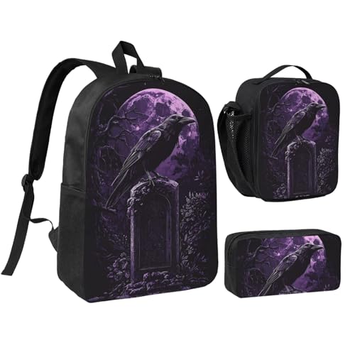 HOT ! Gothic Raven Backpacks 3 Pcs Lightweight Casual Backpack with Fun Graphic Cartoon Print for Daily Commute