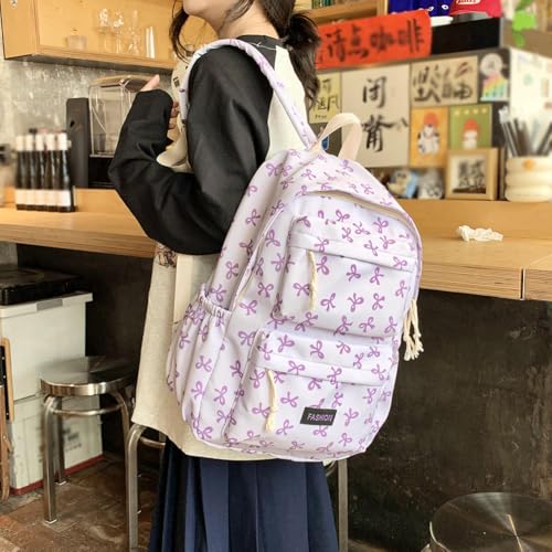 Print Bookbag Preppy Backpack Travel Daypack for (Purple) 7