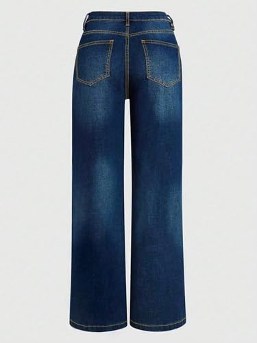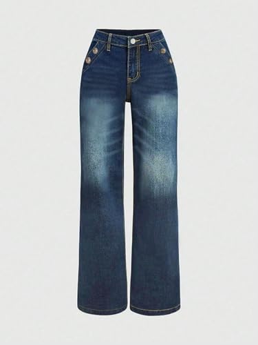 Jeans for Women Straight Leg Bootcut mid Waisted Long Denim Pants Boyfriend Trendy Pockets Double Breasted Stitching 6