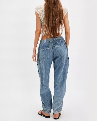 HOT ! SCOFEEL Women's Wide Leg Jeans High Rise Drawstring Flight Denim Pants Elastic Waist Casual Boyfriend Jogger Trousers
