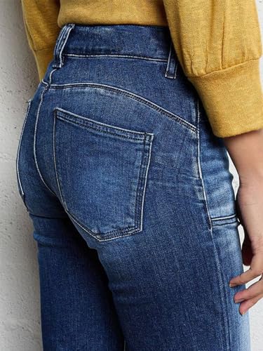 HOT ! Flamingals Straight Leg Jeans for Women Mid Waisted Stretchy Bootcut Jeans Dual Button Asymmetrical Pocket Trendy Denim Jeans