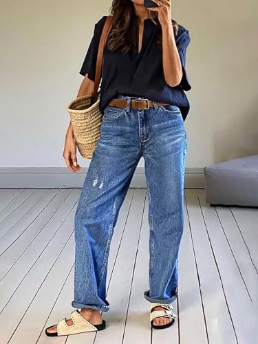 • Feature: These jeans feature a mid rise waist for comfortable coverage a straight leg crop design for a modern silhouette and stylish ripped details with a rolled hem for a laid back boho inspired look that flatters your figure.