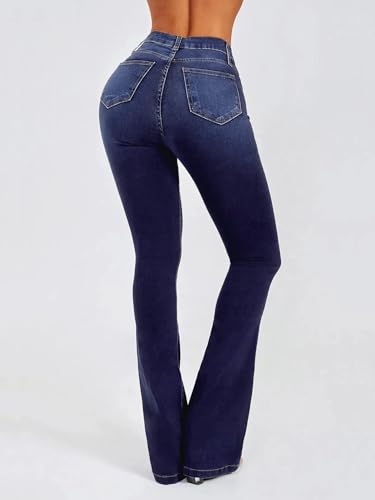 Women's Flare Stretch High Rise Jeans Skinny Bell Bottom Denim Pants 4