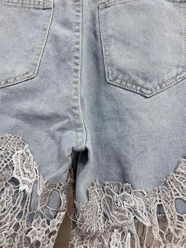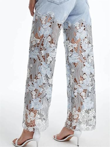 Women’S High Waist Straight Jeans with Solid Loose Spliced Hollow Out and Wide Leg Pants 6