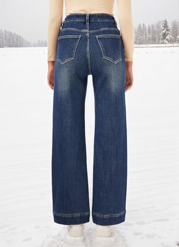 heipeiwa Women's Fleece Lined Jeans Wide Leg Baggy Winter Jeans Thermal Flannel Lined Jean Denim Pants 7