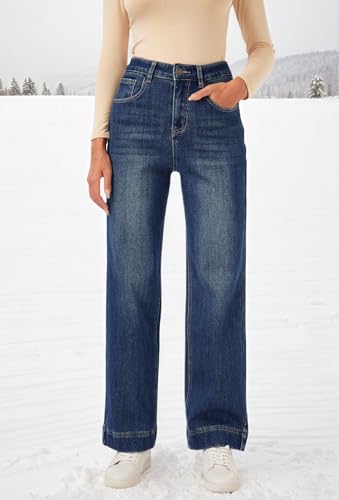 HOT ! heipeiwa Women's Fleece Lined Jeans Wide Leg Baggy Winter Jeans Thermal Flannel Lined Jean Denim Pants