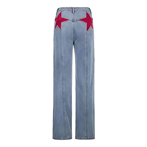 • Design: Trendy design, pentagram colour blocking patch at hip, micro flare, slim fit, zipper and button closure, pockets on the front and back, vintage 90s Y2K style.
