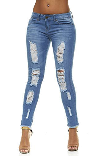 • Unique blend jeans using 98% cotton and 2% spandex results in an extreme comfortable stretch without sacrificing your sexy curves.Edgy fun and trendy jeans: All your friends will want to know your secret, Perfect fitting jeans will hug your curves in all the right places.When it comes to jeans with ripped, destroyed, repaired or torn hems, ankles, bottoms, pockets, legs or knees for women, girls or teens.Low raise