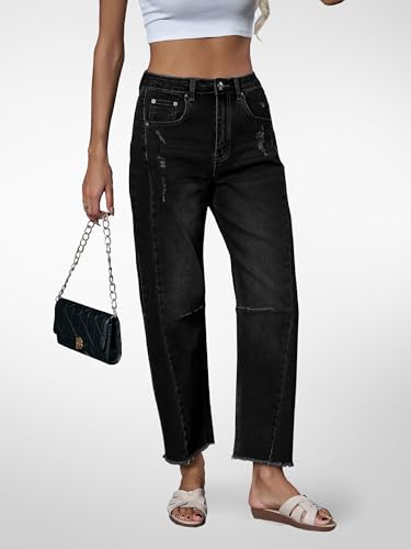 Genleck Barrel Jeans Women Wide Leg - Vintage Baggy Ripped Jeans Y2k Boyfriend Ankle Denim Pants 4
