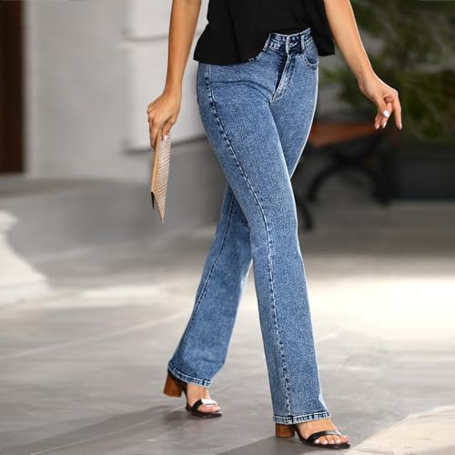 Women Bootcut Jeans Mid Waist Casual Stretch Slim Trouser Acid Wash Flare Denim Pants with Pocket 5