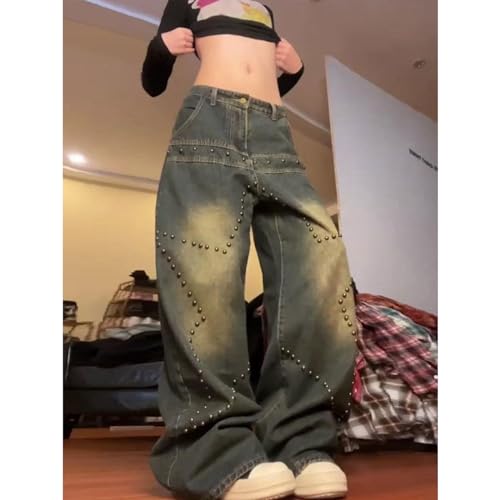 • Versatile design: Y2K workwear pants with star loose vintage classic design. The high waisted design of washed rivet jeans and the highly complex manufacturing process prioritize product quality and customer satisfaction.
