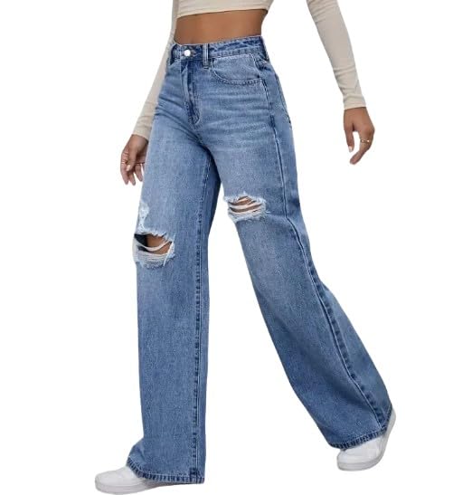• Edgy and Bold Style: The high waist ripped wide leg jeans feature destroyed washed denim and distressed elements, adding a rebellious charm to your look.