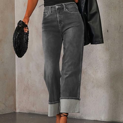 HOT ! Wide Leg Baggy High Waist Jeans for Women Boyfriends Straight Leg Trendy Stretchy Denim Pants