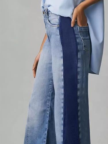 More information about Flamingals Wide Leg High Rise Jeans for Women Stitch Detail Row Hem Jeans Denim Pants