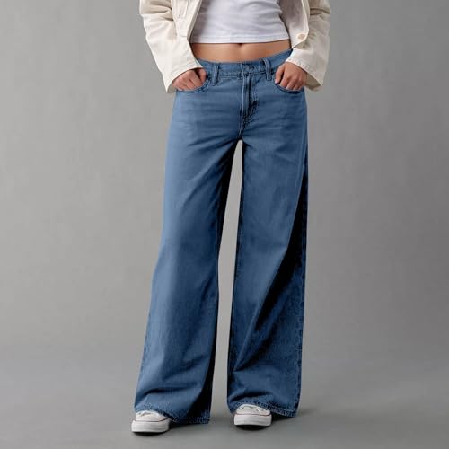 More information about Women's Baggy Jeans 2025 Trendy Stretchy Straight Wide Leg Casual Distress Mid Waist Denim Pants Vintage Y2K Trousers