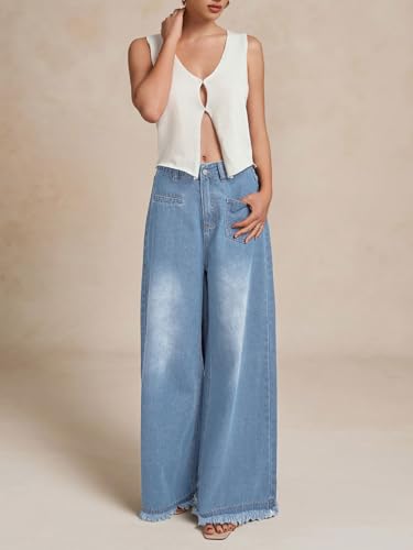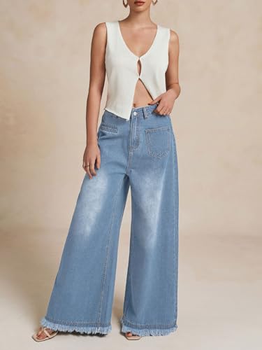 More information about CHARTOU Baggy Wide Leg Jeans Woman Mid Rise Frayed Flare Jeans Boyfriend Stretchy Denim Pants