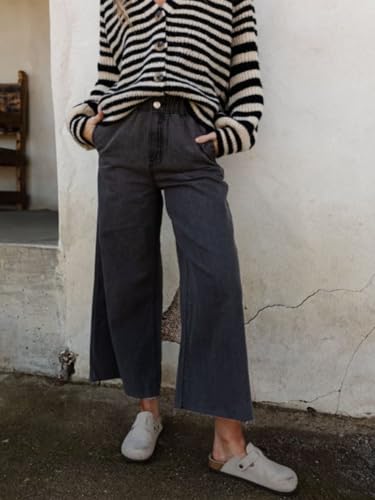 More information about Womens Wide Leg Jeans Relaxed Frayed Bell Hems Boho Denim Pants Elastic High Waist Washed Trousers with Pockets