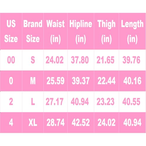 • Please Refer "Size Chart" Before Ordering. If You Are Not Sure About The Size, Please Contact Us. Size Details: S (US 00): Waist 24.02", Hipline 37.80", Thigh 21.65", Length 39.76"; M (US 0): Waist 25.59", Hipline 39.37", Thigh 22.44", Length 40.16"; L (US 2): Waist 27.17", Hipline 40.94", Thigh 23.23", Length 40.55"; XL (US 4): Waist 28.74", Hipline 42.52", Thigh 24.02", Length 40.94". The error in measurement is about 1 inch.