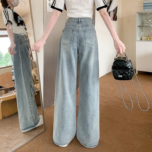 • Design: Grunge fashion women's jeans with cute heart embroidery decor and strap pockets, straight wide leg style, goth and casual style denim pants for women and teens.