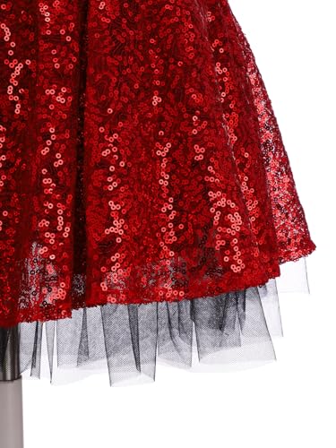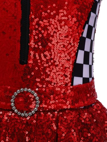 Girls Racer Cheer Leader Uniform Sequined Sleeveless Leotard with Checkered Tutu Skirt Outfit Red 4 Years 6